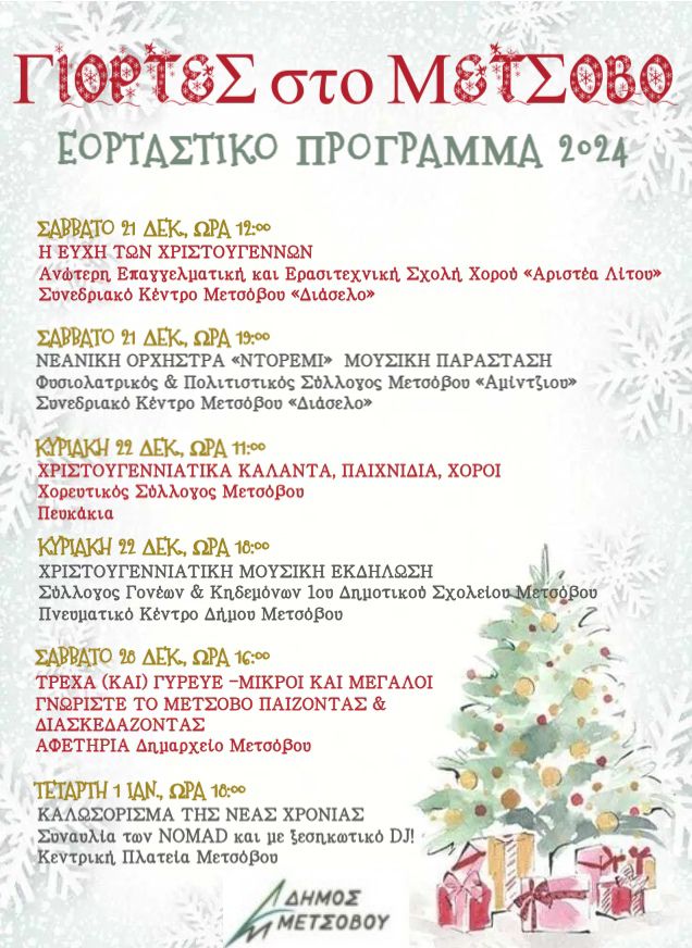 Tags: Δήμος ΜετσόβουΕορταστικές ΕκδηλώσειςΜουσική ΕκδήλωσηΧριστούγεννα