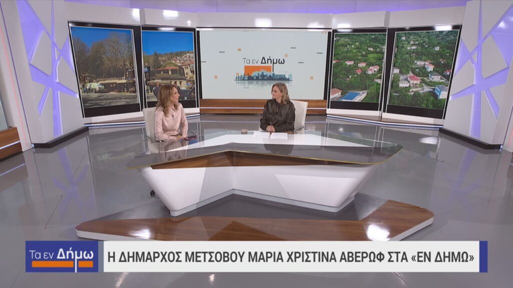 Στη δημόσια τηλεόραση της ΕΡΤ και συγκεκριμένα στην εκπομπή «Τα εν Δήμω» με τη Μαρία Μαγκλάρα – την οποία ευχαριστούμε ιδιαίτερα για τη φιλοξενία – παραχώρησε συνέντευξη το Σάββατο 21/12 η Δήμαρχος Μετσόβου Μαρία – Χριστίνα Αβέρωφ.